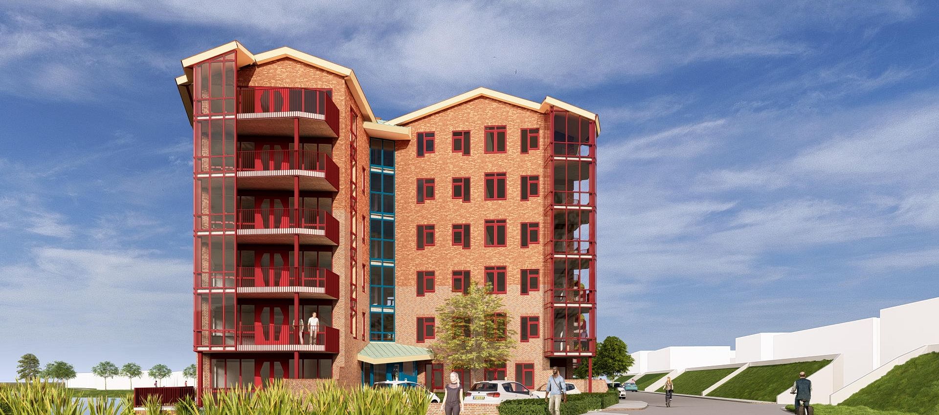 Na een intensieve optimalisatieslag qua woontypologieën, constructieve- en technische uitgangspunten is eveneens de buitenzijde opnieuw vorm gegeven, e.e.a. conform de oorspronkelijke ontwerpuitgangspunten van Alberts & Van Huut. Na enkele inspirerende overleggen met Max van Huut, die nog immer even bevlogen is en meekijkt naar het ontwerp, ligt er nu een nieuw aangepast plan.