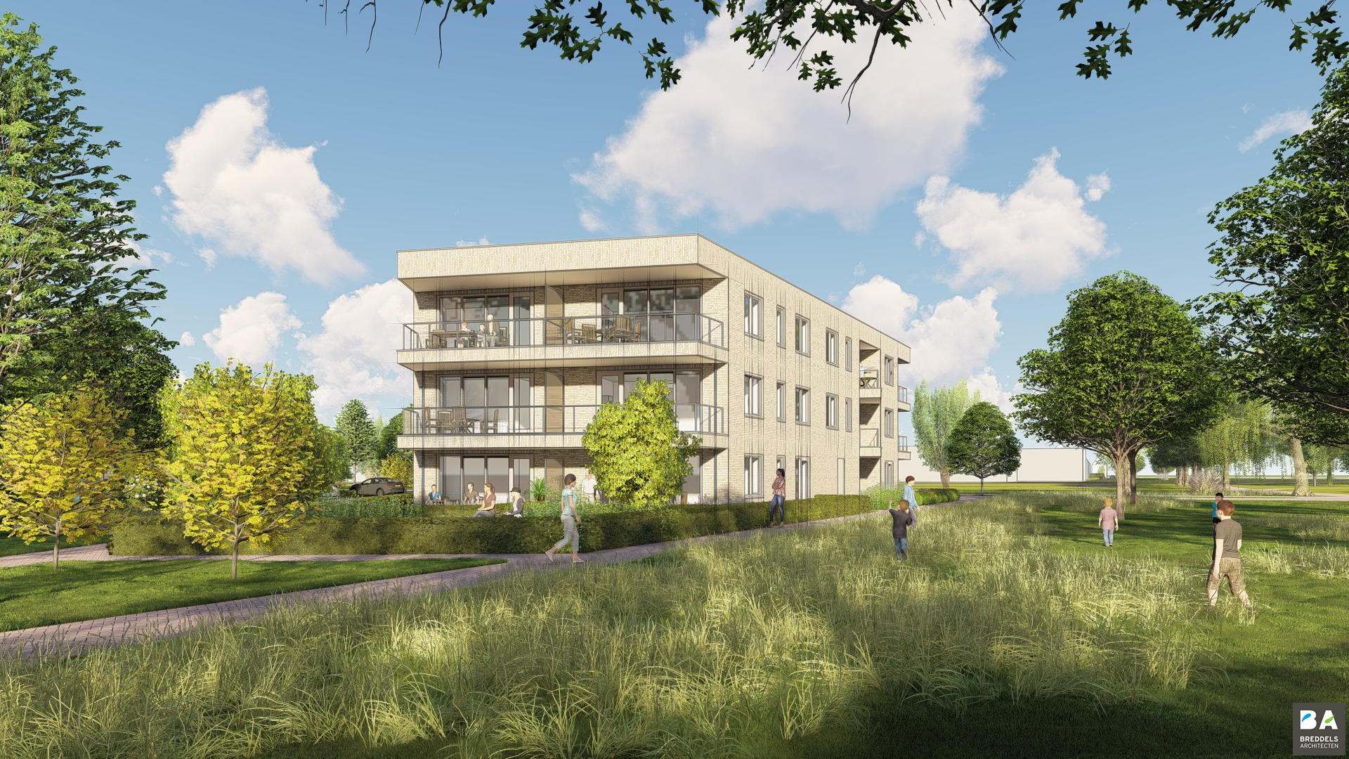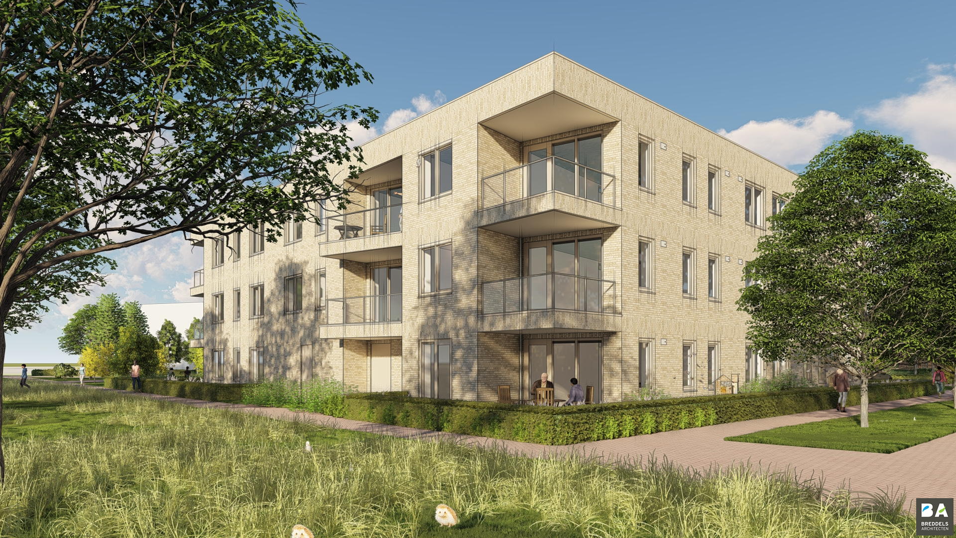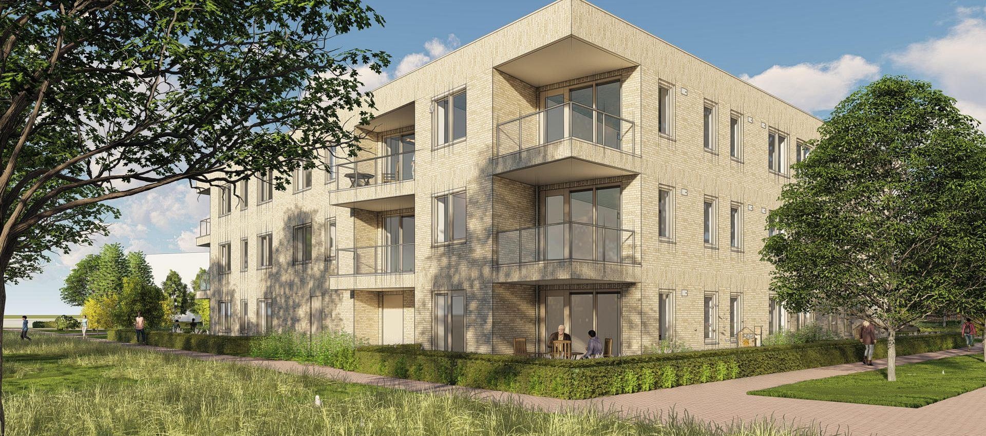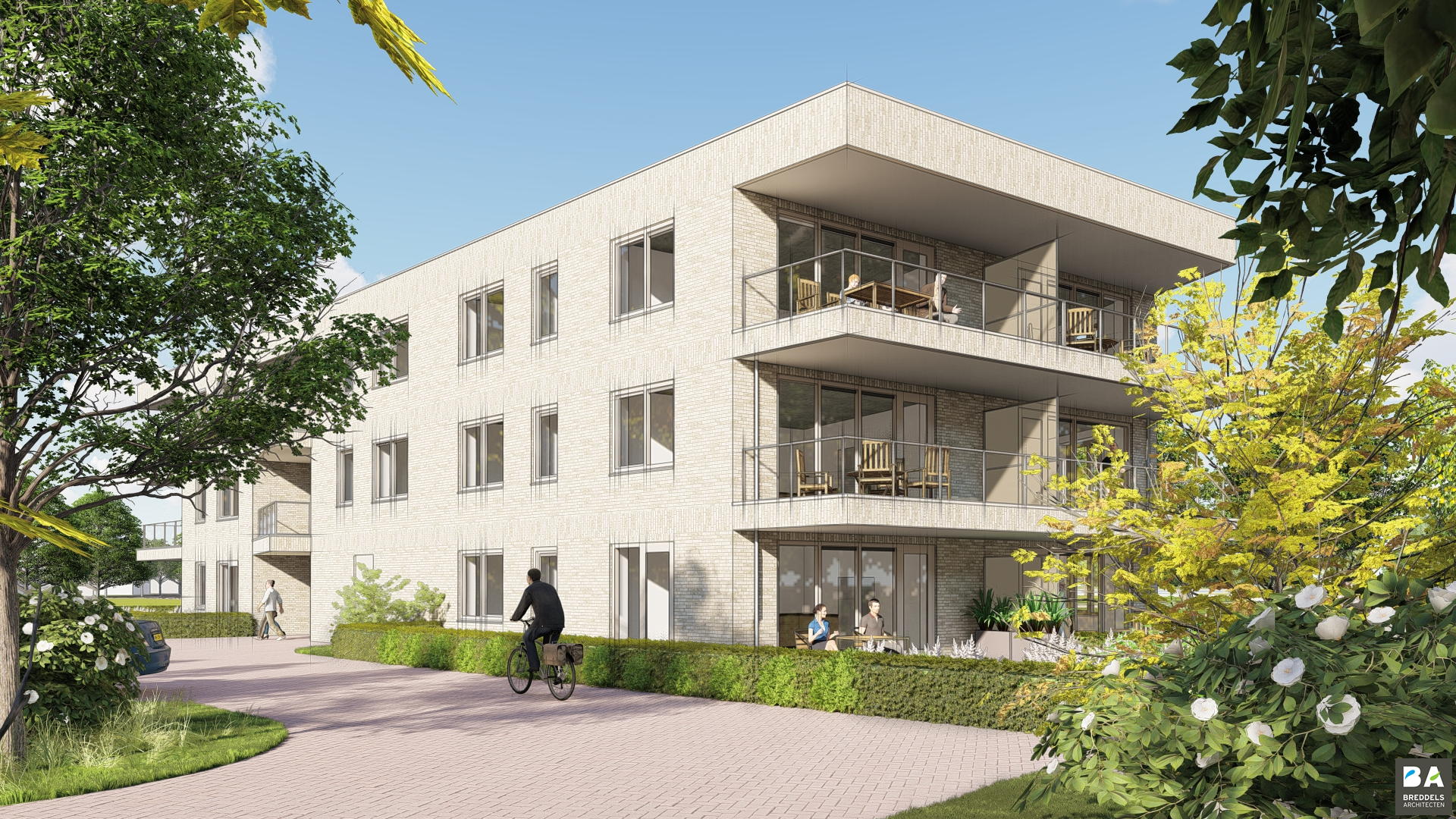 Ieder appartement heeft zijn eigen buitenruimte en is er een prachtige gemeenschappelijke tuin.