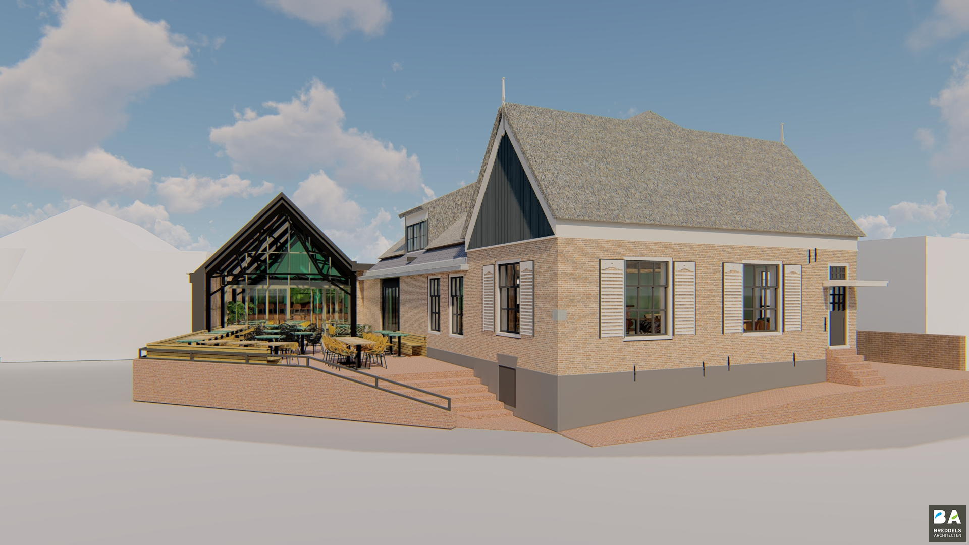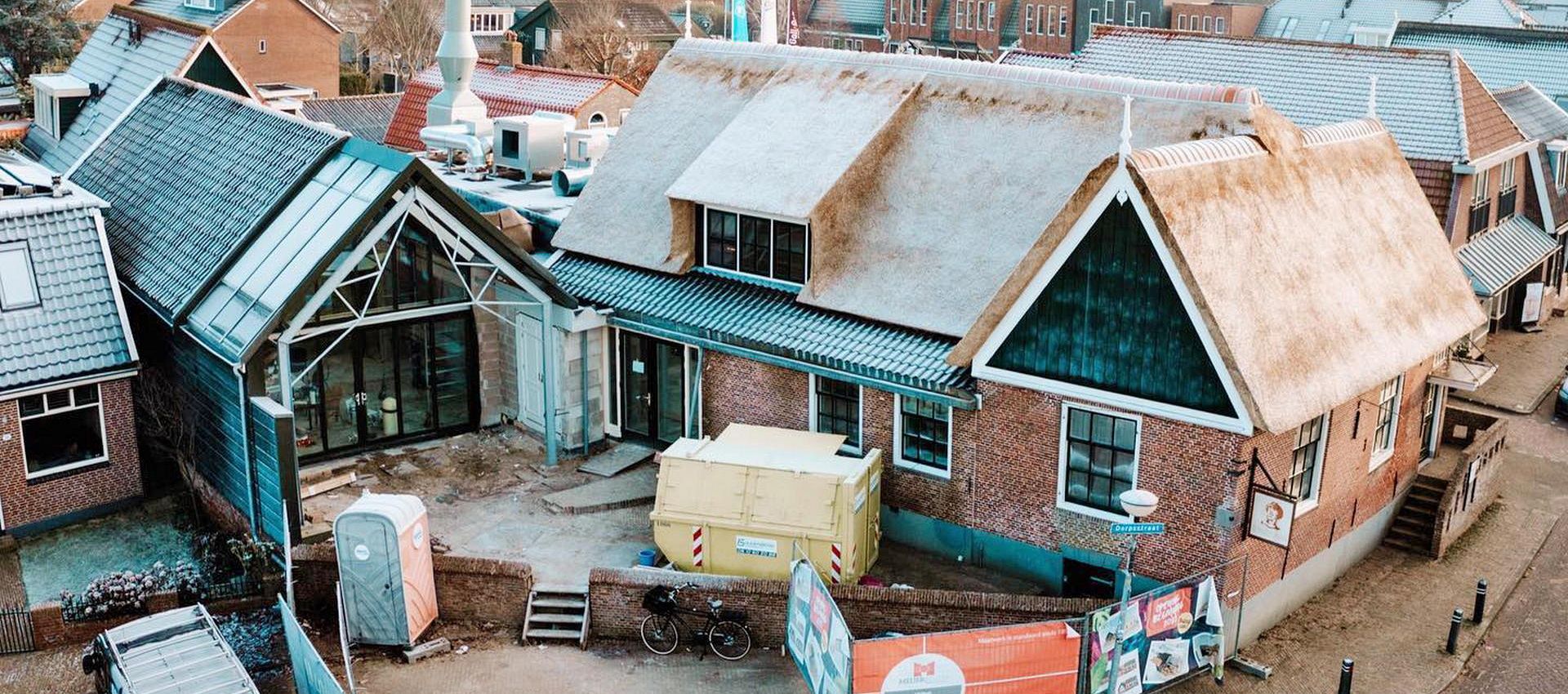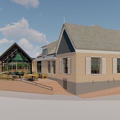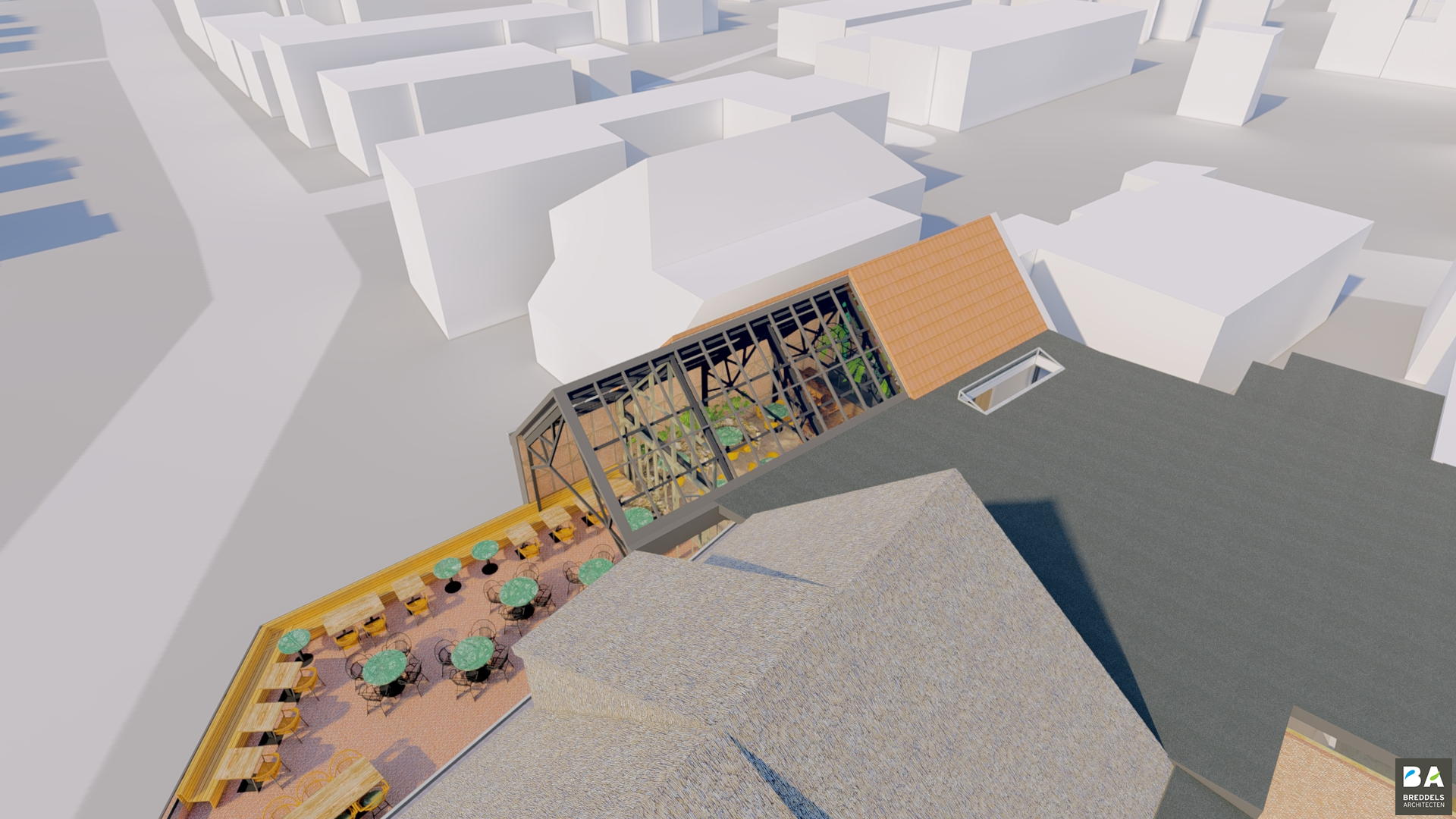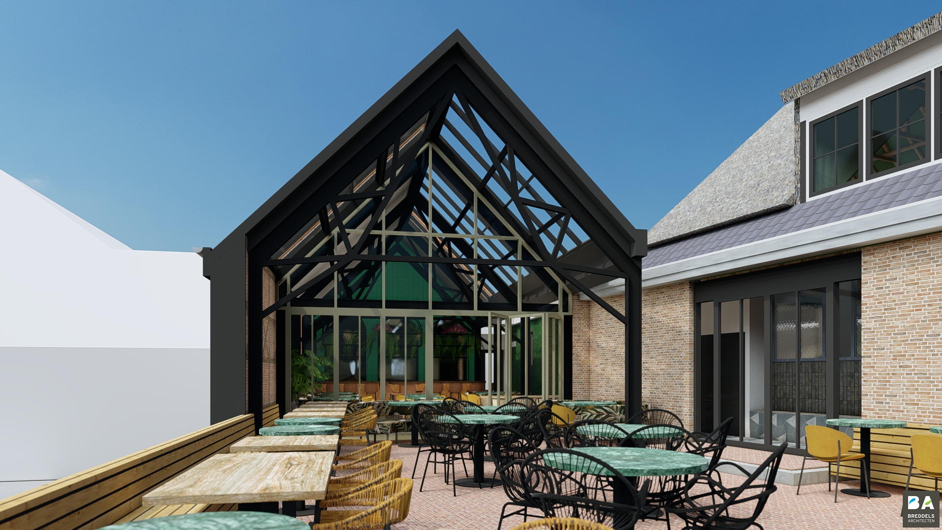 Ook het 90 cm hoger gelegen terras hebben we kunnen uitbreiden ten gunste van meer middagzon en een betere stedenbouwkundige inpassing aan de Dorpsstraat. Samen met een ambitieuze restaurateur en vele locale ondernemers is het monument behouden en is Warmenhuizen een fraai toprestaurant rijker.
