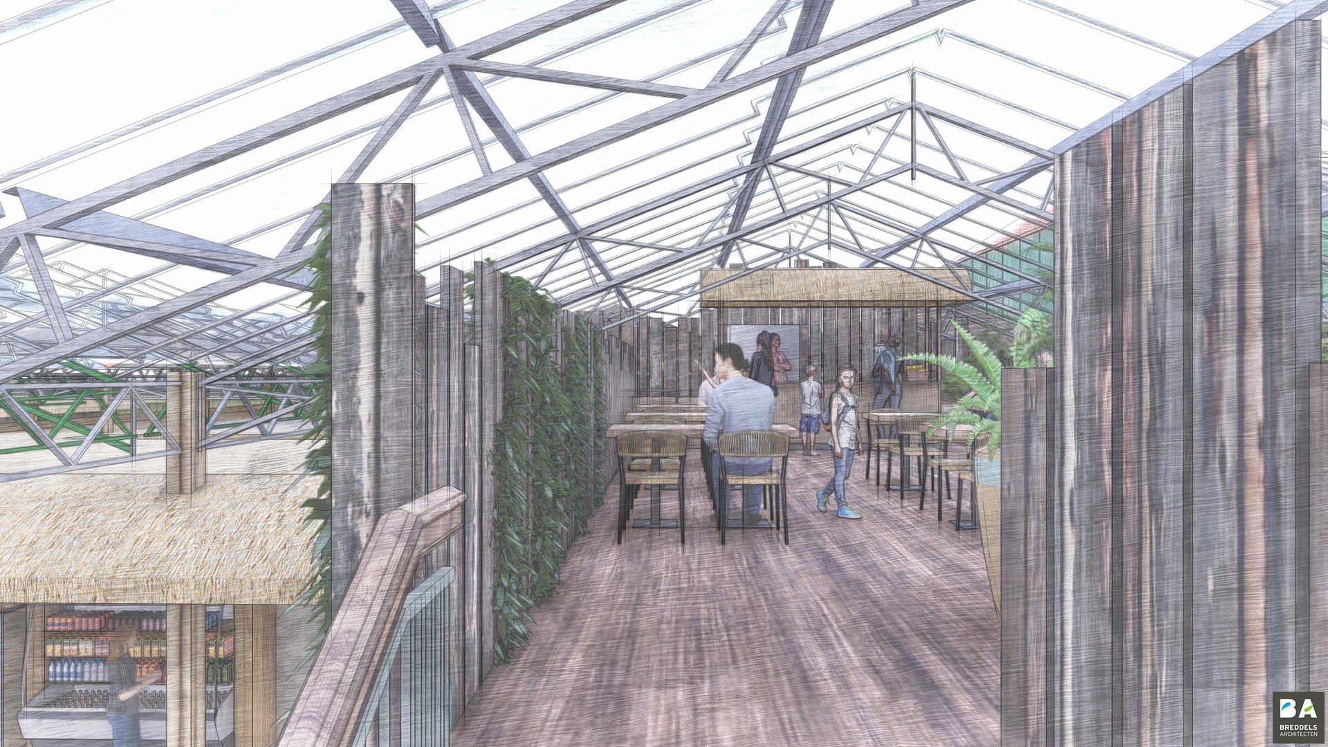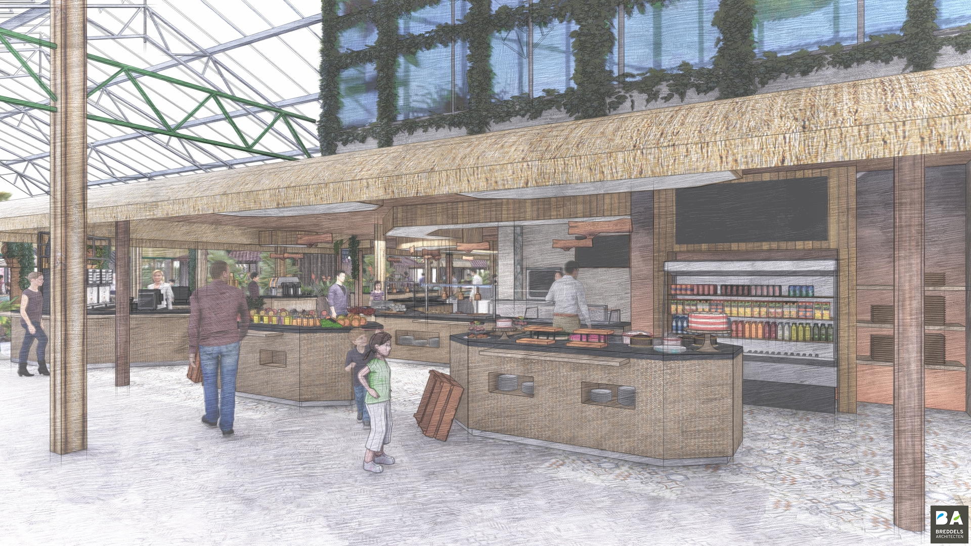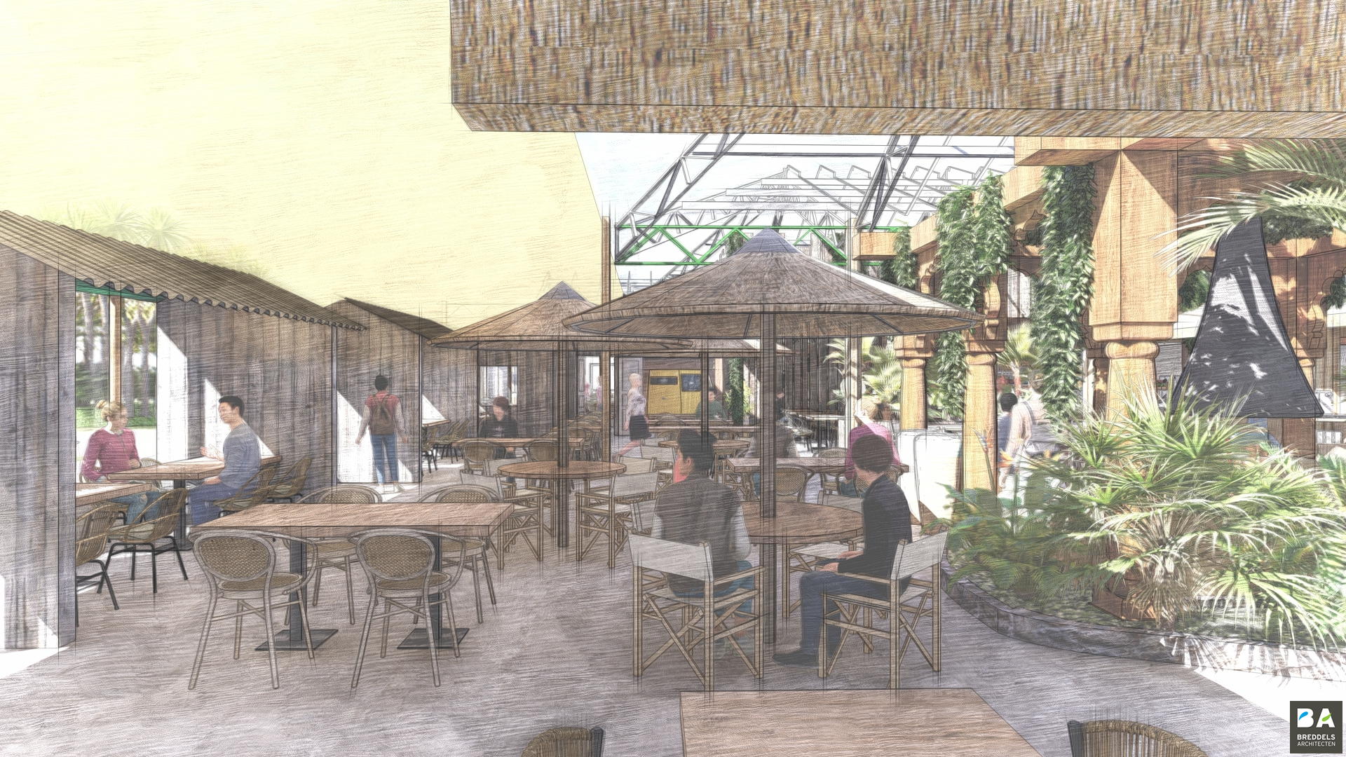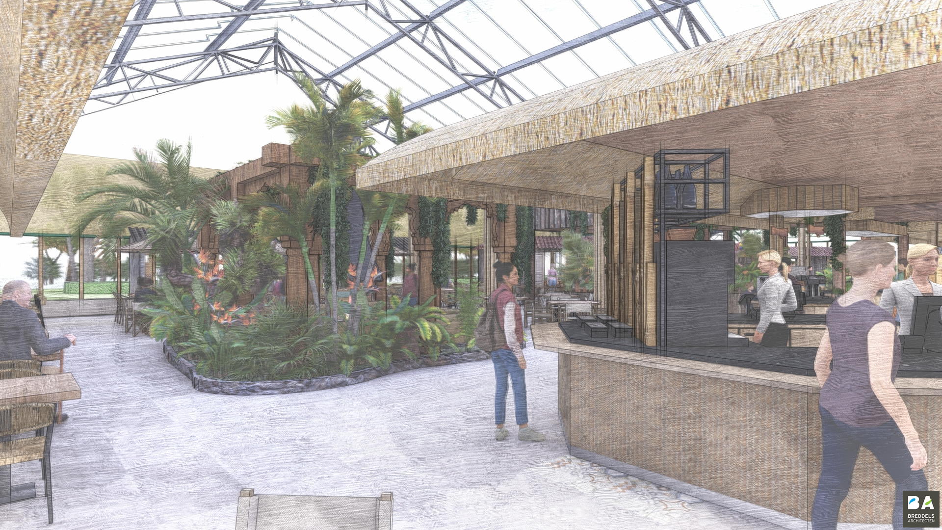 De gebroeders Maarssen kwamen enkele jaren geleden bij Breddels Architecten met de vraag om de entree, de winkel en de horeca meer te betrekken bij de sfeer van de tuinen. Hun droom was en is om de bezoekers vanaf het moment dat ze binnenstappen mee te nemen in de jungle sferen. Inmiddels zijn er meerdere deelplannen gerealiseerd (o.a. Panmarket in 2021 en Pantropica Bar & Restaurant in 2022) en ook de komende jaren zal het team van Pantropica zich inzetten om dit wereldse dagje uit, nog mooier te maken.
