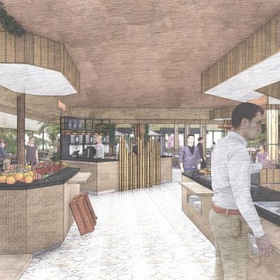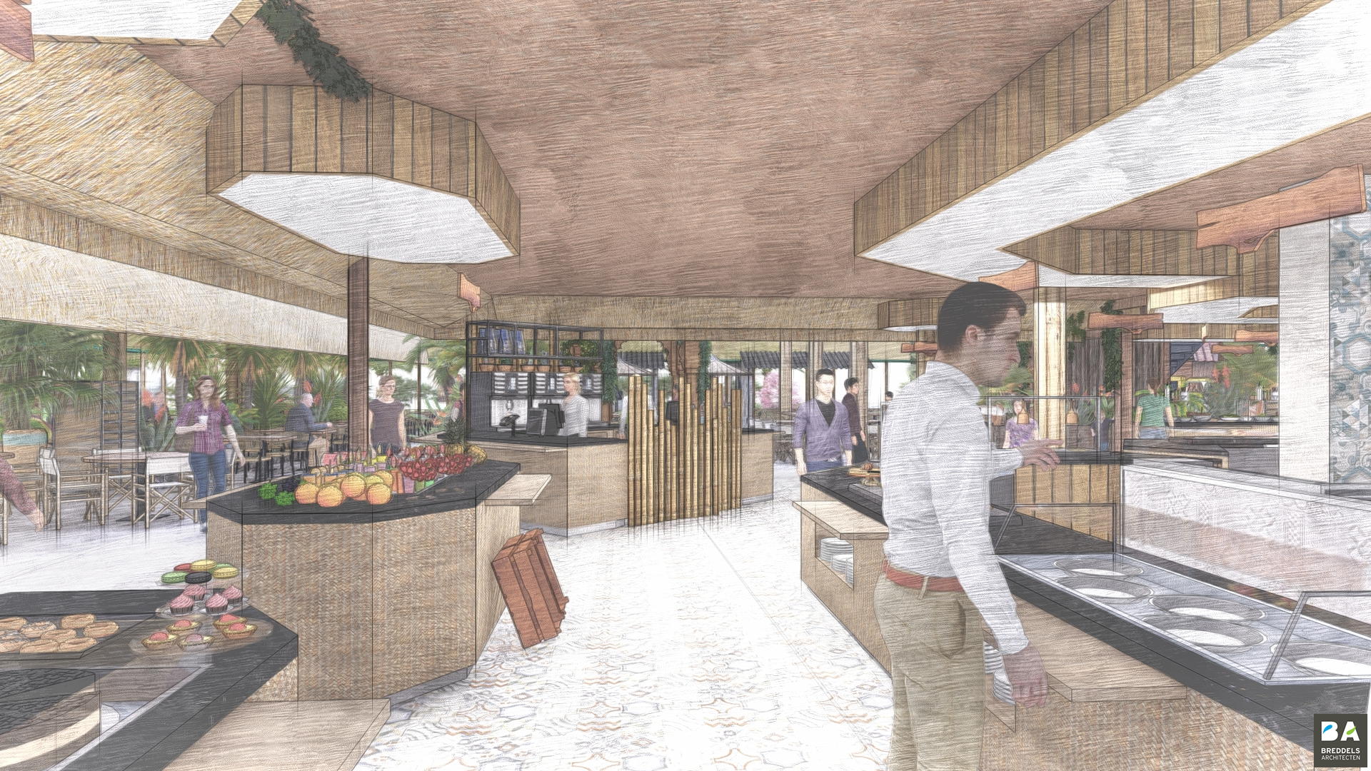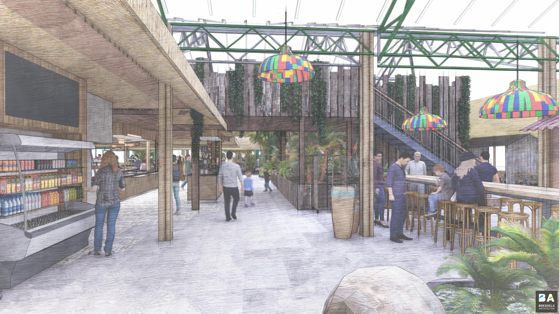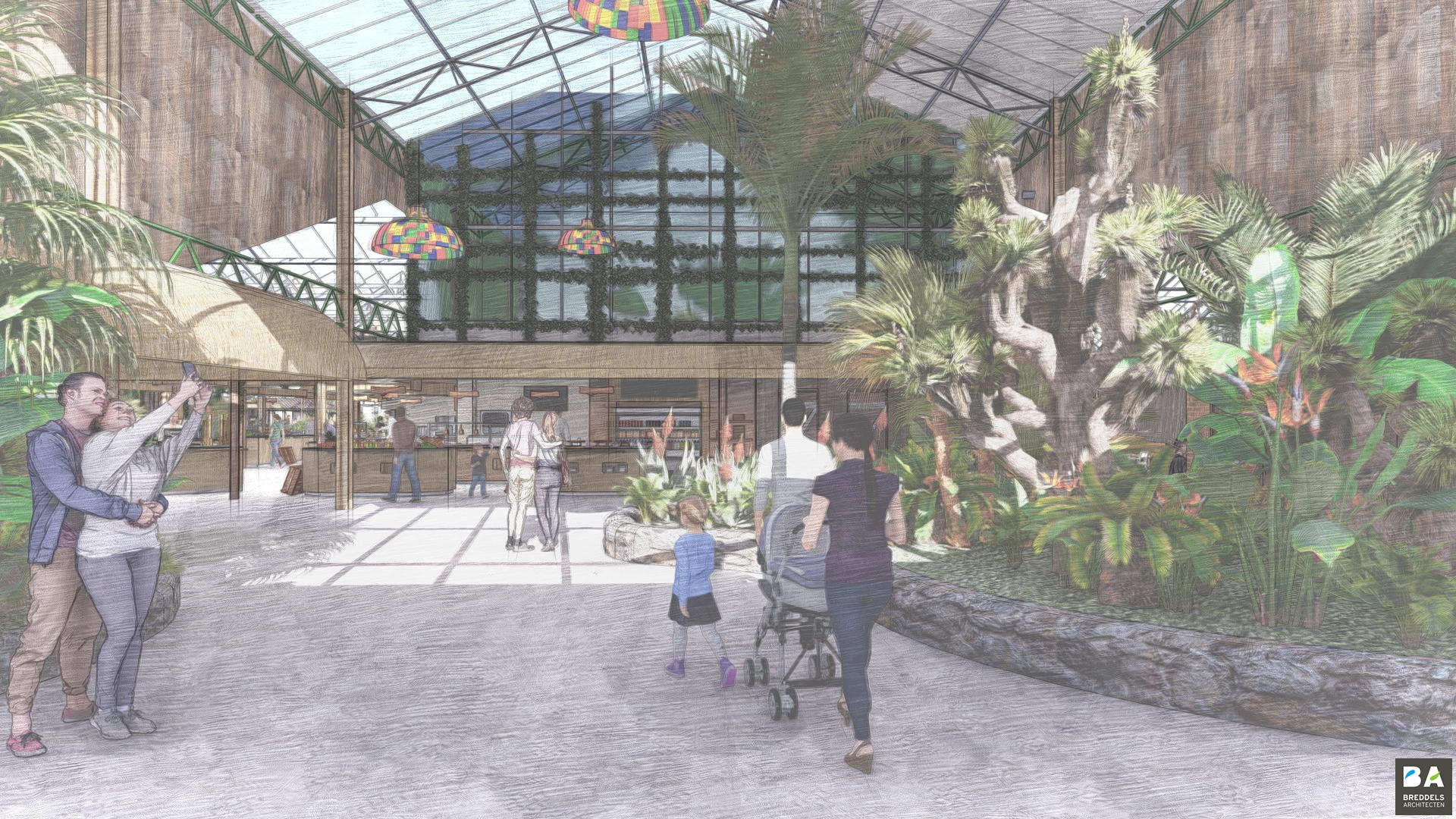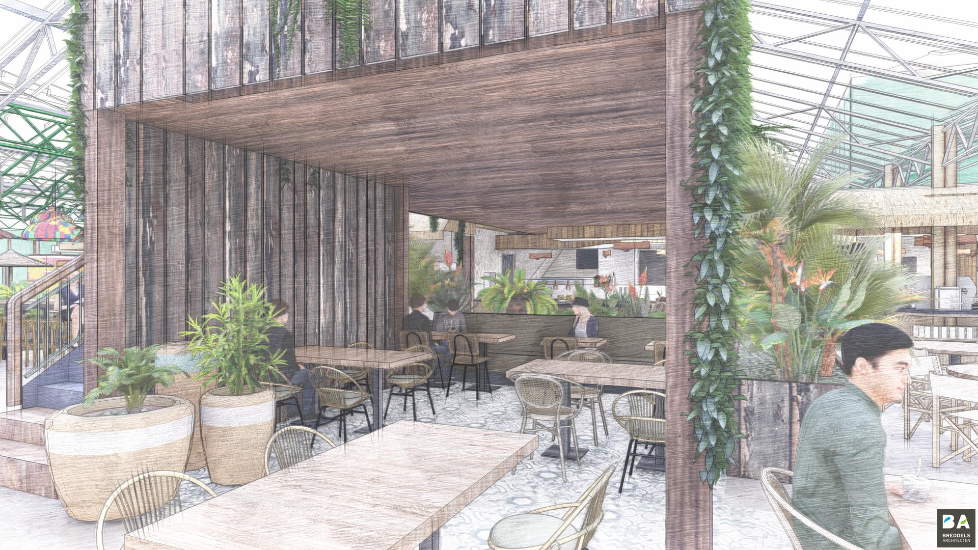 De gebroeders Maarssen kwamen enkele jaren geleden bij Breddels Architecten met de vraag om de entree, de winkel en de horeca meer te betrekken bij de sfeer van de tuinen. Hun droom was en is om de bezoekers vanaf het moment dat ze binnenstappen mee te nemen in de jungle sferen. Inmiddels zijn er meerdere deelplannen gerealiseerd (o.a. Panmarket in 2021 en Pantropica Bar & Restaurant in 2022) en ook de komende jaren zal het team van Pantropica zich inzetten om dit wereldse dagje uit, nog mooier te maken.