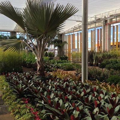 Andere essentiële ontwerpaspecten zijn het feit dat we de buitenplanten (Plantas Ornamentais) niet los voor het gebouw, maar juist geïntegreerd in het gebouw hebben met een beweegbaar dubbel dak voor zowel schaduw als regen. Voor de gelijkwaardigheid van die bouwdelen hebben we een speciale gevel ontworpen, in eerste instantie met een natuurlijke uitstraling van bamboe breezes.