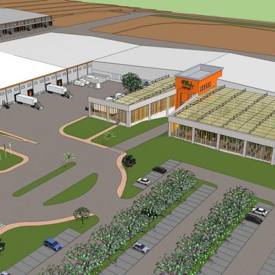 We onderzochten 3 variant locaties en ontwikkelden een concept wat we na 3 dagen aan de board presenteerden. Het concept kon in 2 of 3 fases worden uitgevoerd met een flexibiliteit die de nu nog onbekende toekomstige ervaringen zouden moeten kunnen opvangen. Daarbij maakten wij gebruik van de natuurlijke accidentering van het terrein door zowel het parkeren als het laden onder het centrum te laten laatsvinden. Grote voordelen hiervan zijn de relatief koele en droge laadruimte, de korte looplijnen zonder dat er auto's in het centrum zelf hoeven te zijn en het feit dat de kopers in het hart van het centrum binnenkomen.