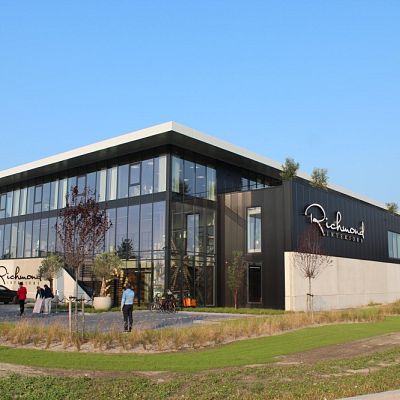 Vandaar dat de plannen herzien werden, zodat het team van 40 man bij elkaar gehouden kan worden. Breddels Architecten is in de arm genomen om, net als voor het vorige pand in Obdam, het nieuwe megapand vorm te geven. Na de bouw van het enorme nieuwe pand is Richmond Interiors naar het bedrijventerrein De Vaandel in Heerhugowaard verhuisd. Niet alleen het logistieke gedeelte, maar dus ook het kantoor en de toonzaal.