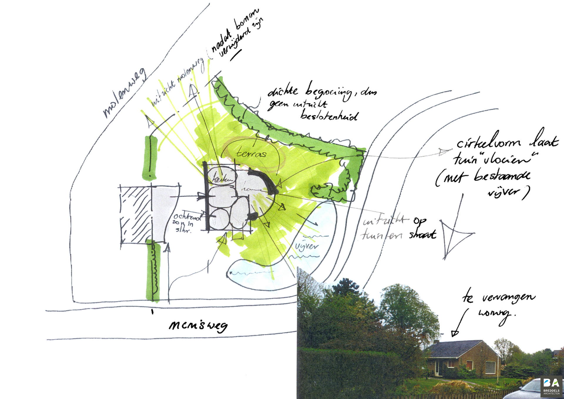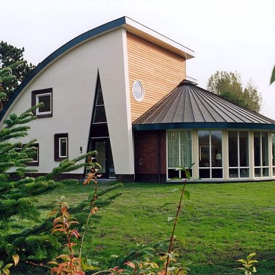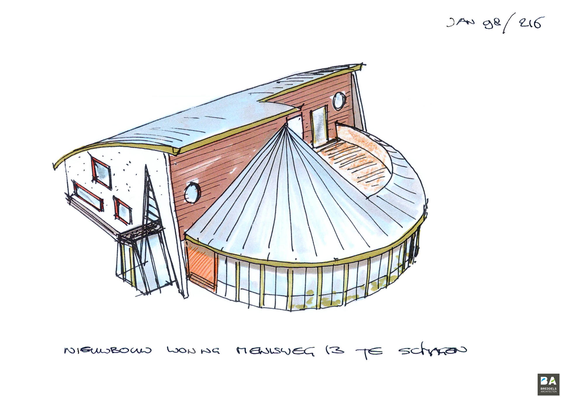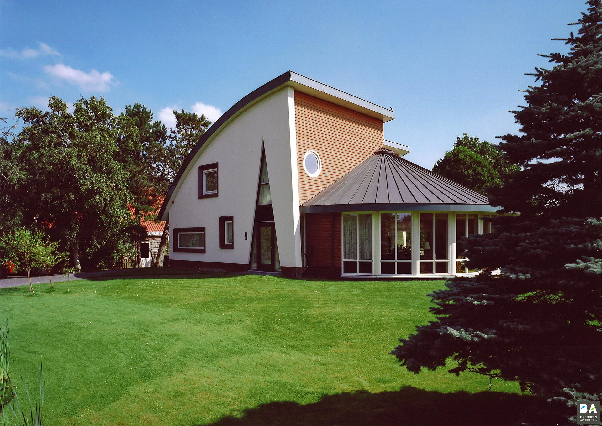 Op een royaal stuk grond net buiten uit oude stadscentrum van Schagen stond een bungalow uit de jaren 60. Deze was dringend aan vernieuwing toe. Breddels Architecten heeft hier een woning gecreëerd die moeiteloos opgaat in haar omgeving en een prachtig samenspel biedt van strakke lijnen en organische vormen. De woning is fraai gepositioneerd op een glooiend perceel met een tuin die op meerdere plekken uitnodigt om te genieten. Ontspannen onder de veranda of wandelen tussen de prachtige fruitbomen.