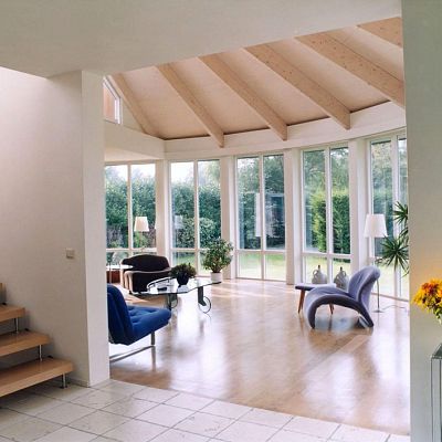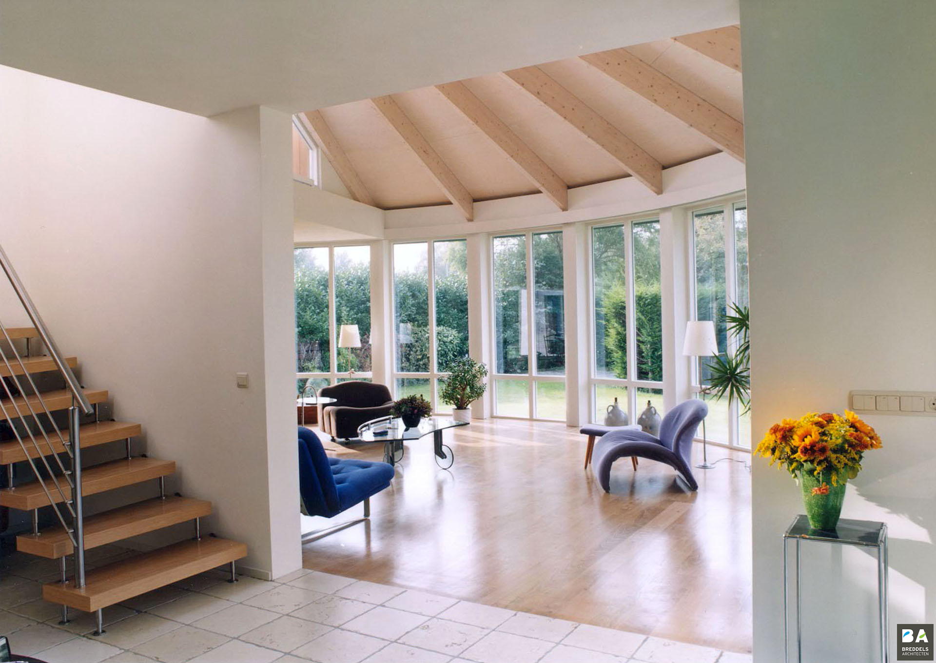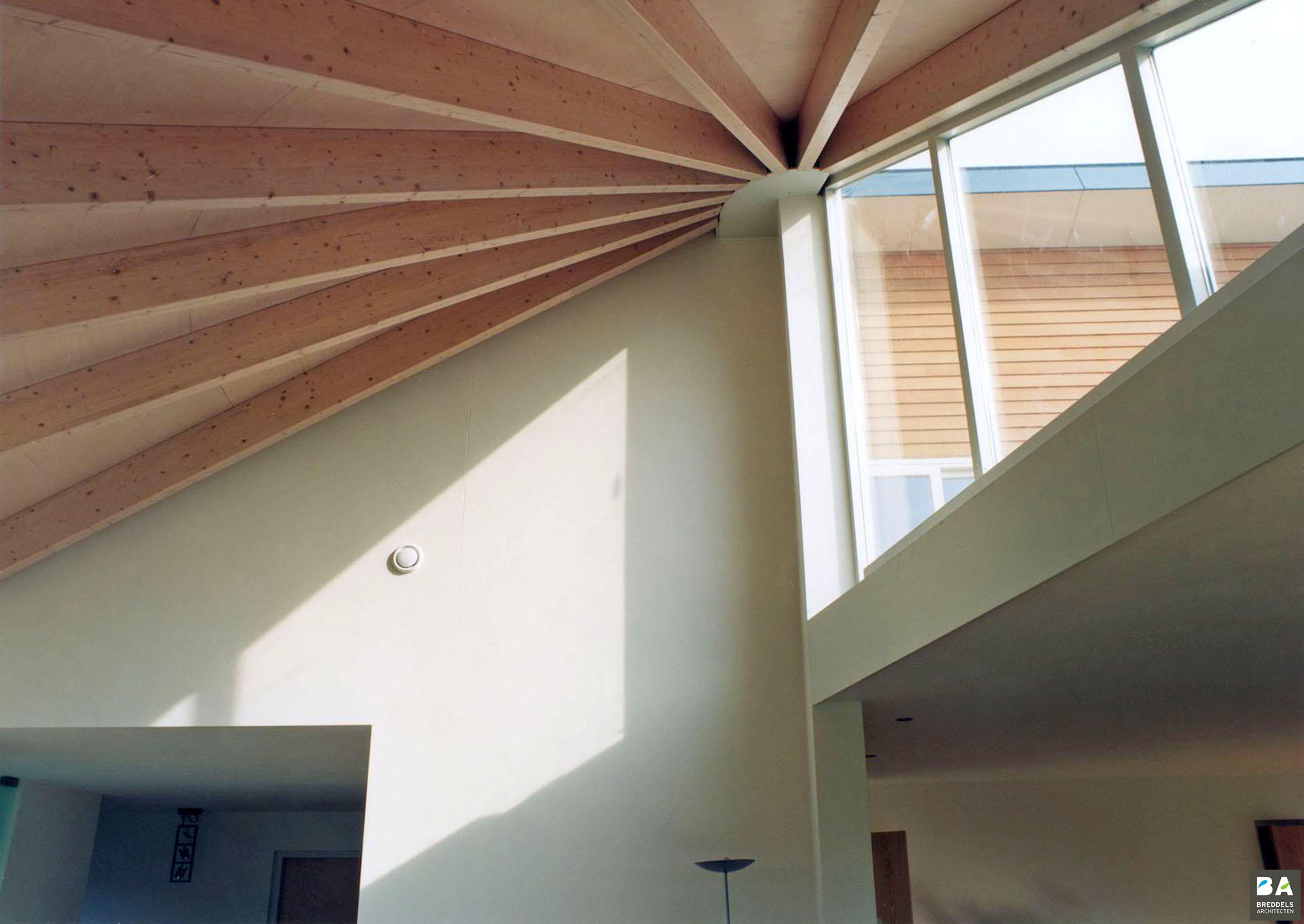 Om het open karakter van de plek verder niet teveel te verstoren heeft de wens van de opdrachtgever naar een beschutte buitenruimte vorm gekregen op het dak. Daar bevindt zich het buitenterras met jacuzzi, dat optimaal op de zon is gericht en door de hoge dakrand aan het oog van de omgeving wordt onttrokken.
