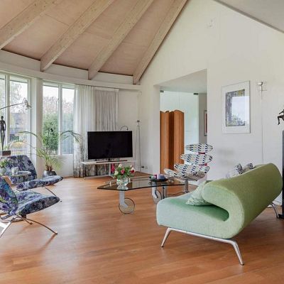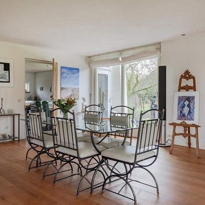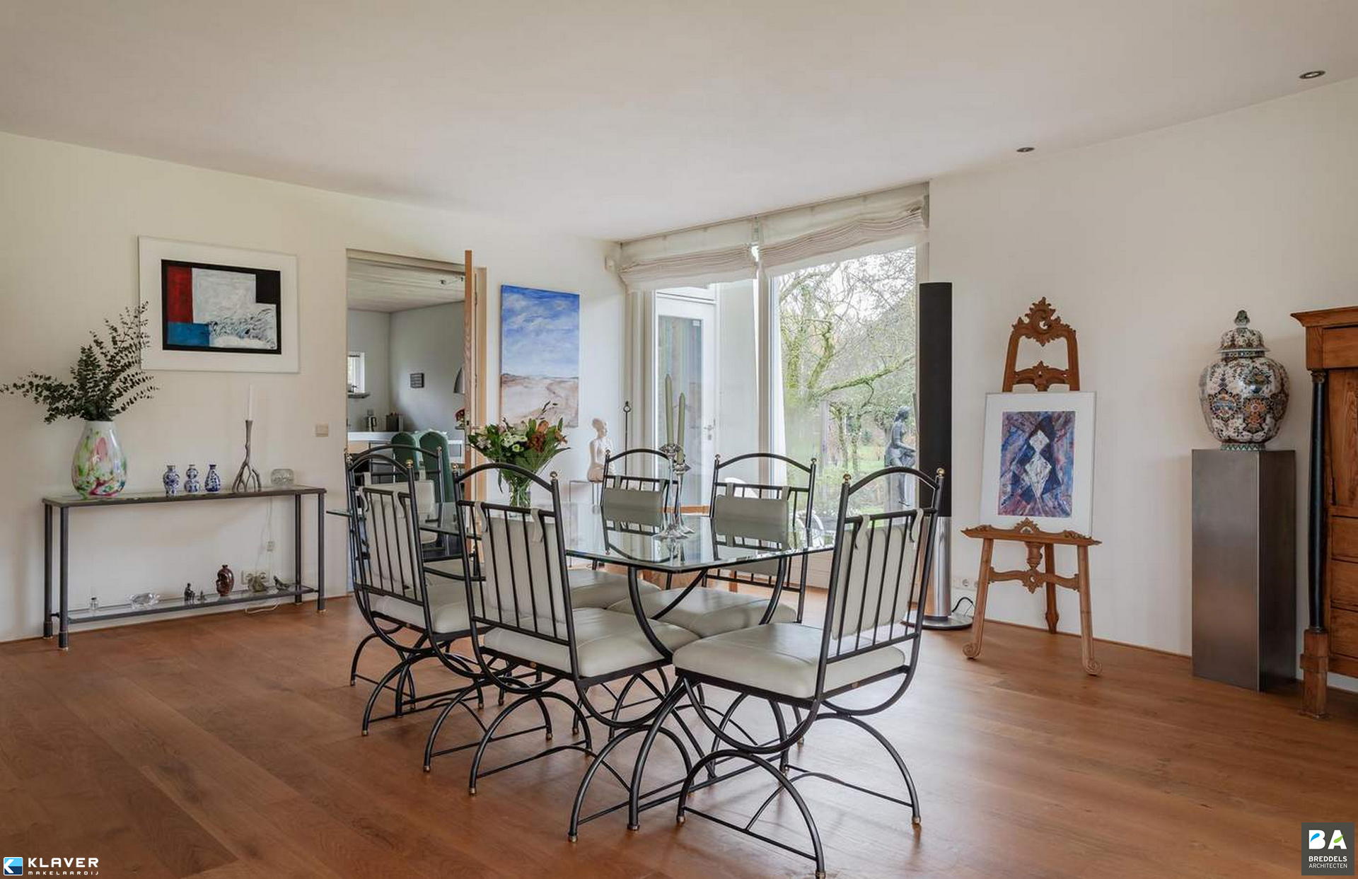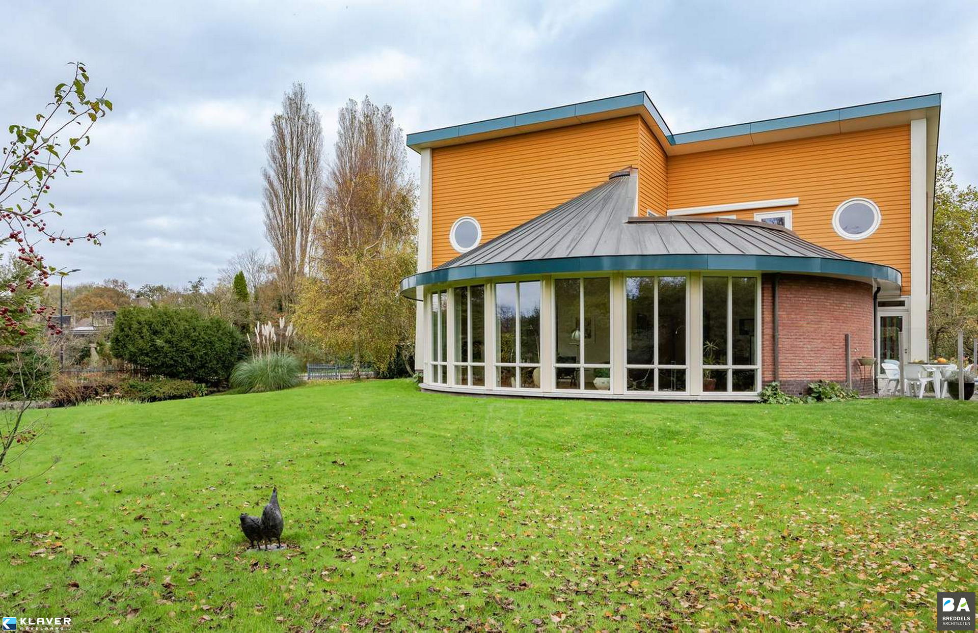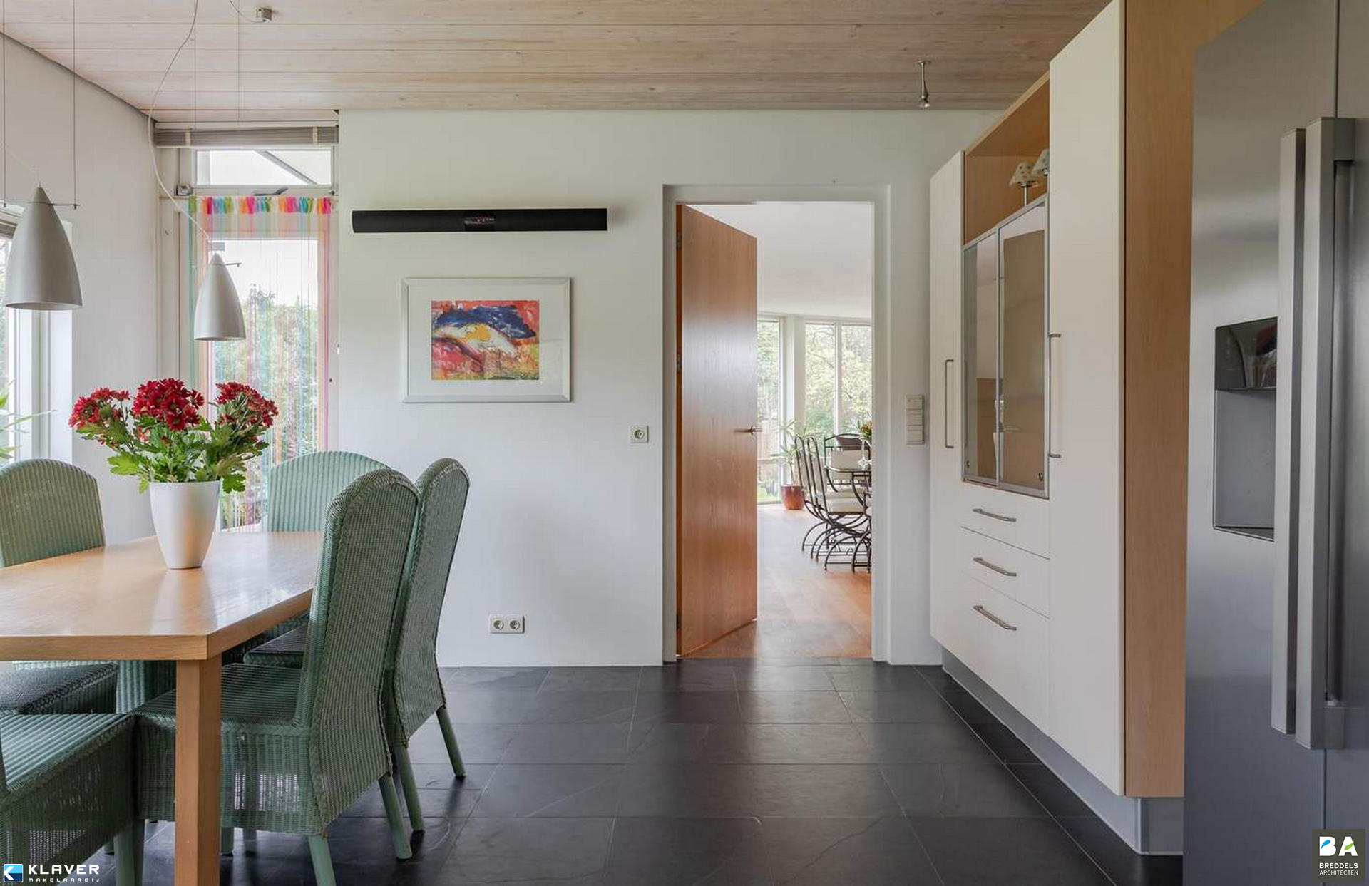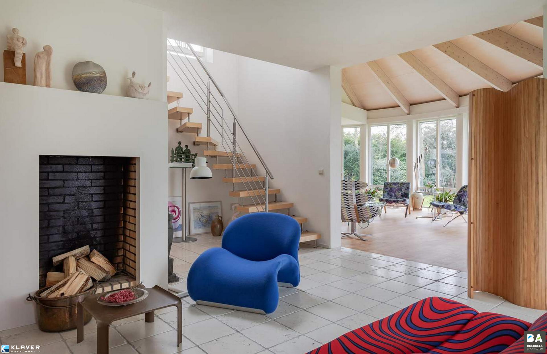 De architectuur komt buiten tot leven in een spel van verticale en horizontale lijnen, afgerond met unieke ronde vormen. De ramen zijn omlijst met bruin marmer, en als eyecatcher springt de royale, half ronde serre met een koper afgewerkt dak direct in het oog. Binnen voelt de woning ruim en comfortabel aan en heeft maar liefst vier slaapkamers. De master bedroom bevindt zich op de begane grond en beschikt over een royale ensuite badkamer, wat de woning niet alleen ruimtelijk maar ook levensloopbestendig maakt. De zorgvuldige eenheid in stijl en materiaalgebruik loopt door tot in de nok van het huis, wat de woning een rustgevende uitstraling geeft.